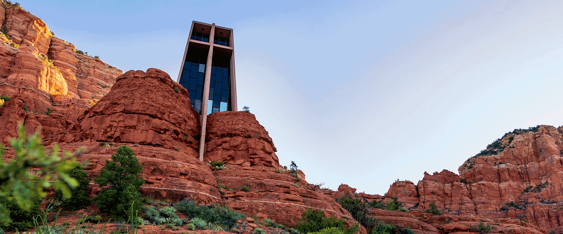 The Chapel of the Holy Cross is a Roman Catholic chapel built into the buttes of Sedona, Arizona, run by the Diocese of Phoenix, as a part of St. John Vianney Parish in Sedona.HistoryThe chapel was inspired and commissioned by local rancher and sculptor Marguerite Brunswig Staude, who had been inspired in 1932 by the newly constructed Empire State Building to build such a church. After an attempt to do so in Budapest, Hungary (with the help of Lloyd Wright, son of noted architect Frank Lloyd Wright) was aborted due to the outbreak of World War II, she decided to build the church in her native region. Richard Hein was chosen as project architect, and the design was executed by architect August K. Strotz, both from the firm of Anshen & Allen. The chapel is built on Coconino National Forest land; the late Senator Barry Goldwater assisted Staude in obtaining a special-use permit. The construction supervisor was Fred Courkos, who built the chapel in 18 months at a cost of US$300,000. The chapel was completed in 1956.